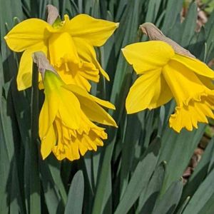 わが庭のラッパスイセン 昨日一輪蕾が膨らんで来たと思ったら、今朝には、一斉にひらいていました‼️ この週末の暖かさは、一気に春を前進させますね😉 🏷日曜ビタミンカラー♪