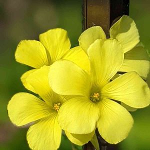 オオキバナカタバミ(大黄花片喰) 遠くアフリカからやって来て、日本に根を下ろしました。 レモンイエロー💛が、目に染みます😆 シュウ酸が含まれているせい⁉️銅や真鍮を磨くとピカピカになるので花言葉が【輝く心】 また、復活祭の頃咲くので【喜び】【母の優しさ】 クローバーと同じ3枚の☘️は三位一体のシンボルで、母とは聖母マリアのことだそうです。愛読紙にかたばみという小説が連載されているのですが、ヒロインは、かつての想い人の忘れ形見の養母になります。自分にはまだ、実子がいないのに。 タイトルの意味が少し分かりかけてきたような😅 🏷日曜ビタミンカラー♪