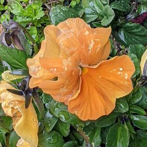 所用で出かけた駅前商店街のビオラ 昼から降り出した☔に濡れて艷やかになりました😉👍 🏷水滴の水曜日