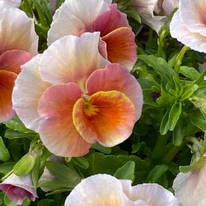 こんにちは〜 カフェの周りをかわいいお花が囲んで いました パンジー 見たことがないカラーですね 春らしい色☺️🌸🍀