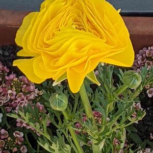 散歩道で出会いました 赤❤️や🧡の球体に近いラナンキュラスの後、この💛が👀に飛び込んで来ました‼️ 重ねた紙を折ったような面白い形‼️ 🏷ゲゲゲの月曜日 🏷月曜ビタミンカラー♪ 🏷蕾応援団