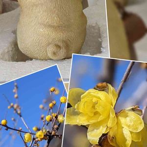 明るい💛のロウバイ 青い💙空に映えて。 たしかパグ犬のおしり 🏷おケツの日 🏷月曜はビタミンカラー