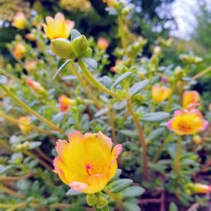 今日のお花🧡ポーチュラカ 🌿夏の花壇を彩るとても丈夫なお花🌿 スベリヒユ科 マツバボタンの仲間です( ´꒳`*)人(*´꒳` ) 花言葉は「いつも元気」