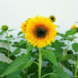 今日のお花🌻ひまわり🌻 別名「日輪草(ニチリンソウ)」 「日輪」とは太陽☀のこと。 英名は「サンフラワー」 暑い日差しの中、燃えるように 明るく華やかに咲くひまわりは 自らが太陽を模したような ビタミンカラーの夏の風物詩。 太陽を追いかけて花が回るから「向日葵」と言われますが 実際に回るのは 茎や蕾が柔らかく若いうちだけだそうです。