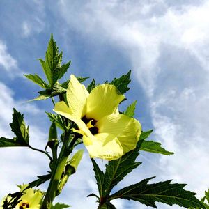 一瞬の青空を仰いで... 家のオクラが 懸命に首を伸ばしているように見えました❇️🌿 先ほど撮影📸 🏷雲仲間
