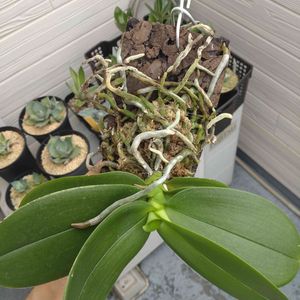 贈答用のファレノプシス。 炭化コルクに板付してベランダで管理してるんだけど新しい根っこがめっちゃニョキニョキしてる(ノ゚0゚)ノ~
