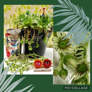 遊びに来ていた娘が家で育った子供達を寄せ集め セダムを詰めて楽しんでたのはいつだったかな 昨日友達にあげる寄せ植え探していたら 何これ🎶 あまりの可愛さに💘 セダムっていろんな表情見せるね センペルもいい味出してる👌