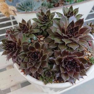 おはようございます。 昨晩遅くから風🌀が強く吹き荒れています💨 センペルビュウム ブラックミニ 色付いてきました。