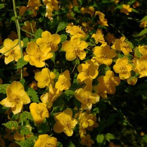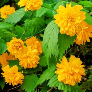 八重ヤマブキ 公園の八重ヤマブキがたくさん花を咲かせていた。 うちにもあるけど花数が少ないのは栄養不足なのかな。 枝だけはグングン伸びて来てる。