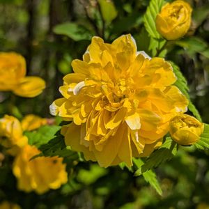 💛八重咲きヤマブキ(山吹)💛 新緑🌿に黄色の花🌼✨ 黄色の花びらの中に、ほんの少し白い花びらが混ざっているのがいいなぁー💞(*^^*) 4月22日㈫🤳撮影♪