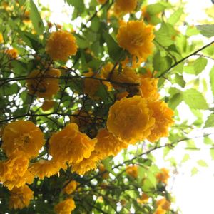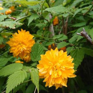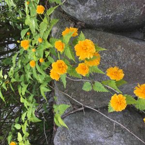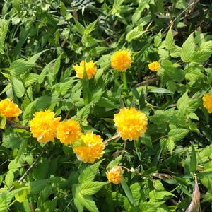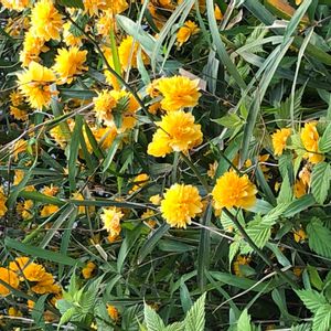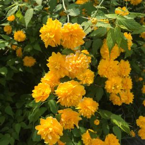 道端 ヤエヤマブキ(八重山吹)、バラ目バラ科ヤマブキ属の落葉低木