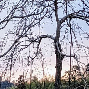 夕暮れ 薄っすらビーナスベルトの空… 蕾を膨らませた枝垂れ桜が 浮かび上がって