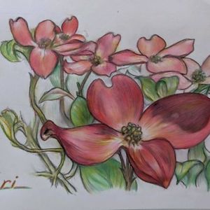 連投失礼します。 「赤いハナミズキ」 只今、旬です❗️(神奈川) 昨夜、仕上りが粗いながらも 描きたい姿までイケたので 終了しました〜 ※色鉛筆画、ボールペン併用🎨✏️🧑🎨