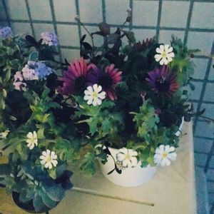 お部屋の窓辺。。玄関先。。に…… ずっと緑🌱🌱🌱だけだったので 最近 春日和もあって お花も呼び込みました〜🎶\(◡̈)/