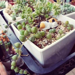 🏷️ネックレスの日 グリネさん🌱 先月より少し増えて47粒有りました🎵 そして… 新しくお迎えしたちびロボ🤖 頭に紅稚児の🌼を飾ってみました😆