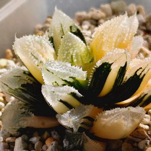 ●ススキノキ科 ツルボラン亜科 ●ハオルチア属 ●白帝城錦😻😻 『毎月8日、9日は白帝城の日』☝️😁 おはようございます!🥱🥱😅🥱 全斑葉が割とある株ですが、何とか健在です!😆 良い株に成長して欲しいな…🤔