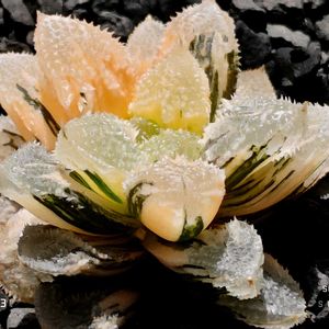 ●ススキノキ科 ツルボラン亜科 ●ハオルチア属 ●白帝城錦😻😻 『毎月8日、9日は白帝城の日』☝️😁 葉の表面が白帝城独特の白いザラザラした質感が良く表れている状態…🤔 😁良い感じかも…