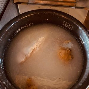 お昼ごはん 鳥手羽と生姜のお粥 お米少しの10倍粥です。 炊飯器のお粥コースで、美味しいお粥さんが簡単に。 塩味で食べます。