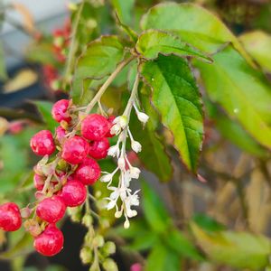 クランベリー ブーゲンビリア 咲いてました (*˘︶˘*).。*♡ 持ち主さんからクランベリーの実酸っぱいのよね〜食べてみると言われ断りました😅 後で調べたら生食には向かないらしい😱