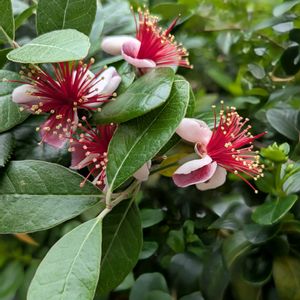 フェイジョアのお花も咲いて来ました🍒❤️ 花と蕾🌿🧚🏻 可愛いですよね♥️