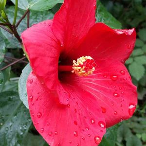 夜からの雨降りで心配してたハイビスカス🌺が綺麗に咲いてくれました(⑅•ᴗ•⑅)◜..°♡ ついてないハイビスカス🌺でしたけど、2個目も咲いて嬉しいです(人*^꒳^*)ニコ♡ 雨も止んだし良かったです😊 \( ˙▿˙ )/
