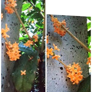 3度目のキンモクセイの花 最初9日10日 2度目10月4日 そして3度目は昨日確認しました 今朝に📸できました🙆 雨上がりでも花は落ちてないですよ(*´︶`*)ノ⋆⸜ ⚘ ⸝⋆