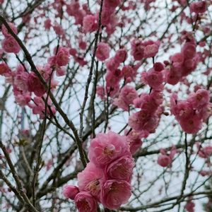 カンヒザクラ??? 仕事先に咲いています👍 10時休憩で雪見だいふくを食しています😅 今日は涙と鼻水🥲が まさか まさか 花粉症?????