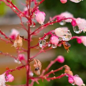 🏷️0の付く日は雨粒の日 ヒューケラのお花に付く雨粒