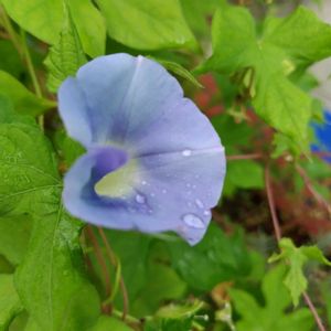 ↑大輪の朝顔 青雲 🏷️水滴の水曜日 🏷️雨粒シリーズ☆ 🏷️0の付く日は雨粒の日 ↓冬越しして、3年目のクライミングサンパラソル やっとよく咲いてくれるようになりました🤍 🏷️白い水曜日♡