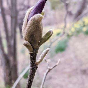 小屋前の紫木蓮の蕾も 膨らんでいます 🏷金曜日の蕾たち 🏷蕾応援団 何だか鳥みたい…ということで 🏷鳥(飾り…にも