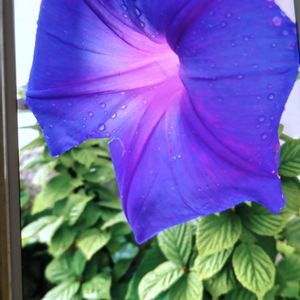 初朝顔、スノーフレーク 成長遅く咲かないかと思ってたけど、どしゃ降りのおかげか急に生き生きしてます 蕾も控えてて明日も咲きそう 種採りたいね💙