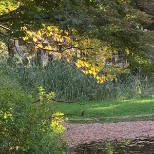 テレビのニュースで名城公園が紅葉🍁の見頃を迎えてます、と言っていたので行ってきました。 名古屋城に隣接する公園です。 お堀のところにカワセミ🐦がいるのを発見👀❗ 📱のため小さくしか撮れませんでしたが初対面だったので感動してしまいました〜🌟。:*♡🎶¨̮⑅* 見えますか❓ 逢えて嬉しかった…飛び立ったとき羽根がめっちゃキレイな碧色でしたー💙