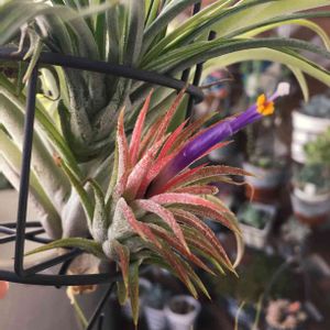 ダイソーで買ったエアープランツ に花が咲きましたよ(*⁰▿⁰*) 名前はイオナンタだったかな? 期待してなかっただけに感動っす! (*≧∀≦*)