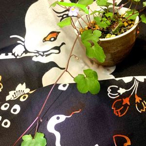 盆栽 小藤。 藤の木を盆栽の為、矮小させた物。 ひょうたんの日本手ぬぐいと。