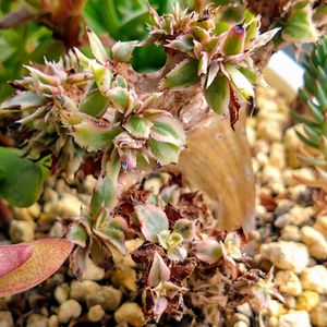 お疲れ様ですm(_ _)m 🏷𓈒𓏸︎︎︎︎毎月10日は綴化の日 お願いします🙏 ジュリア綴化です 去年の強風🌀にて 鉢ごと落ちてバラバラ事件発生 (||゚Д゚)ヒィィィ!🪴💦 鉢にまたバラバラを挿しておいたら 茎の面積が広い?ので 根っこがすぐ出ました🙌 前よりモリモリになったかな? (o´艸`)♡ 隙間に枯葉ギッシリですが 取ってしまうと なんかスカスカしそうで そのままです( ・᷄ ᴗ・᷅ )ゝ💦 でも 綴化の枯葉取りって 好きなんですよね((φ(-ω-)🌱 ではでは(*>∀<)ノ))