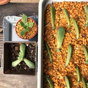 先月DAISOから買ってきた、名無し徒長エケベリアさん。 ✂️して葉挿しして、なんとか長雨を乗り越えてそれぞれ成長中です。 チョンパした上の方は1度腐れかけてさらにカット✂️💦 紆余曲折を経て随分小さくなってしまいましたがなんとか発根。 葉挿しは鉢不足につき、アイスクリーム容器で管理してます🍨 親株さんからも赤ちゃん誕生👶 どの子もかわいい♡