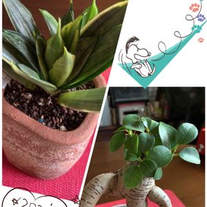 ダイソーで見つけたー💕 ガジュマルの不格好がきにいった‼️ でも、植える鉢が見つからず🤣もう少し大きいサイズ買わないとね❗️ サンセペリア❗️大きくなって😊 マイナスイオン出してネ💕