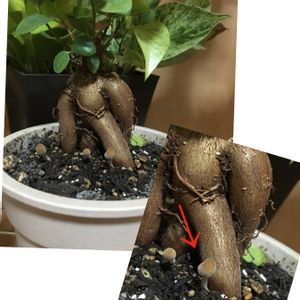 じめじめとした天気が続いているせいか、ガジュマルさんの足元にキノコがはえてしまいました💦