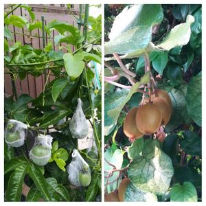 おはようございます^_^ 知人の庭兼ガレージにて。 パッションフルーツにごみネット掛けてあげてて、ちょっと笑えたけど、これも凄い工夫ですね〜💕 キウイは鈴なりだし…🥝 すっかり“花より。。。”でした🍡
