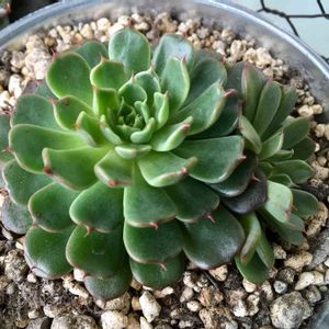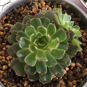 美尼王妃晃♪♪ 下葉…何枚かジュレちゃってます💦 親株と子株の間に新しい 子供ちゃんが見えるかなぁ? やっと顔を見せてくれるようになりました(*´꒳`*)
