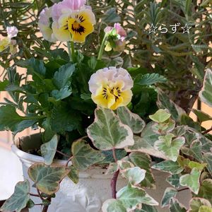 ビオラは、小さくて愛らしい💕 まして フリルのミルフルは、超超ラブリー💕💕 フレンジラベンダーとヘデラの隙間が いい感じに殺風景なので 隙間を見れば 「何か入れたくなる病」が…🤣