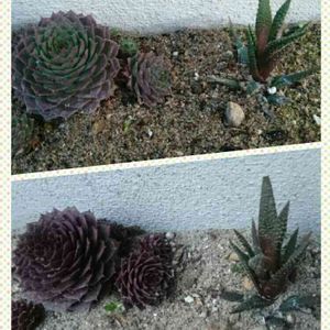 軒下の地植えコーナー🌱 上が1/19で、下が3/30 冬を越しましたよー✨ センペルさんいい感じでしょ? 右の…十二の巻だとずっと思っていたんだけど、なんか違う気がしてきたなぁ…。