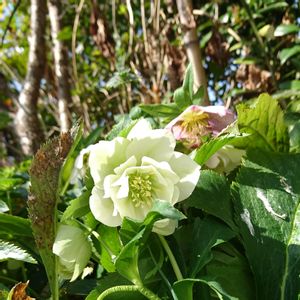 今日のお花 ①クリスマスローズ(まだ咲いていないので過去pic) ②以前息子が作ってくれたクリスマスツリー🎄と葉挿しからの子 ③カット苗で頂いて今年で2年目 ④⑤玄関横の多肉たち