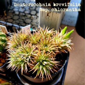 Deuterocohnia brevifolia ssp. chlorantha デウテロコニア・クロランサ pic① 子株が出てきたのかと思ってたら 先っぽに白い物が…( Ꙭ)‼︎︎︎︎ どうやら花が咲いたっぽい🌸 地味すぎて見過ごすところだった😂 初開花🌸嬉しい🤗💓 pic③④ クロランサの花のアップ 100均マクロレンズで撮影で 🏷ありがたハッピー❤︎100均 参加させていただきます(⋆ᴗ͈ˬᴗ͈)” ※追記(5月12日) 全部で6個の花を咲かせました! pic⑤ Euphorbia guillauminiana ユーフォルビア・ギラウミニアナ 冬越し失敗😩 なかなか起きないな?と思ってたら 茎の中がウニャΣ(ll゚Д゚ll)ヒーッ ⭐になってました😭 ごめんね、ギラちゃん🙏 ありがとう、ギラちゃん🥹 暫くは夫のギラちゃんを愛でる事にするわ💦