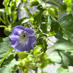 何年か前に植えていた 黒ほうずき いつだったかも忘れた😅 そのこぼれ種が 今年は2本開花💜🩵 ジャーマンアイリスの鉢に生えたのとアブラムシが凄かったので 1本は抜きました🥺