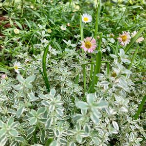 花壇前のプチジャングル シルバータイムの上に エリゲロンが覆いかぶさってきました。 零れ種のエリゲロンだったはず… 一度切ってあげようかな? シルバータイムはカーペットのように広がってるけど 今年お花咲かなかったんだ〜〜何でだったのかな? どうやら下にはムスカリが生息しています(^◇^;)こういうの 抜きにくいんだ💦 今日は一日曇り☁️なんか静かな日曜日です。