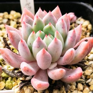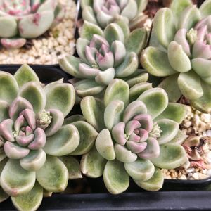 エケベリア 水蜜桃 中国版の桃太郎とも言われる子w 普通の桃太郎は、もうちょいワイルドで こっちは桃姫って感じな優しさがある子よぉ✨ チワワっぽい色合いが出て綺麗です 葉挿しもそこそこ出ますし虫も付きにくく 丈夫で育てやすいですよぉ🤣