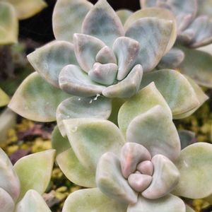 エケベリア ムーンサークル なんか凄い色になってきたよぉ✨ 色抜けの方だけど…😅 けど不思議よなぁ🤔植物って基本は緑じゃん⁉️ 葉緑素って緑の字が入ってるくらいだし けどこの子ら水色じゃん⁉️ ユーカリの銀世界とかも水色じゃん⁉️ 不思議よなぁ…🤣 まぁ可愛ければ全て許されるよなぁw ⤴何が⁉️🤣