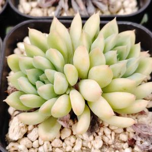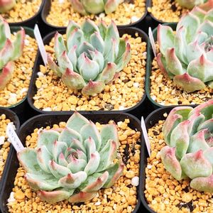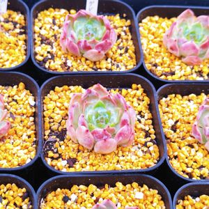 エケベリア グリーンピンク カラーミックスなお名前の子✨ そもそも残骸のような貧弱苗が更に 無惨なお姿になった図😂 けど、株はがっちりして色も綺麗じゃん✨ ぜったい可愛い子だから再来年の販売用に 増産と育成頑張ろう💪