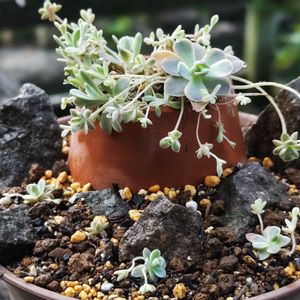 セダム ブラックベリー 大きい粒の方のブラックベリー セダムともグラプトとも言われてるね🤔 性質はどっちかって言うとセダムよな... 花はどっちつかず...けどセダム寄りかなw 水が少ないとすぐに痩せるぞぉw ってか明らかにセダムにしか思えないのに 何でグラプトペタルムなんだろう⁉️ 成長点の突端に花が咲くグラプトを知らんw 成長はすっごい遅い気がするけど... 増やすのも確率は高くない気も🤔 あちこち枯れが目立つよなぁ🤣 花が咲きそうだけど、花見ちゃうと 花枯れするまで脇芽出ないから 全部切ってしまいましたぁw ちなみに、もう1つのアルブムブラックベリー こっちは凄い細かく小さな粒で ベッラ・デ・インベルノの小型な感じで 赤黒い子なんだけど、地植-10度に耐えた たった数本を石垣ガーデンに植えて ちょこっと増えたのでハウス内に地植たら 雑草みたいに増殖した😅
